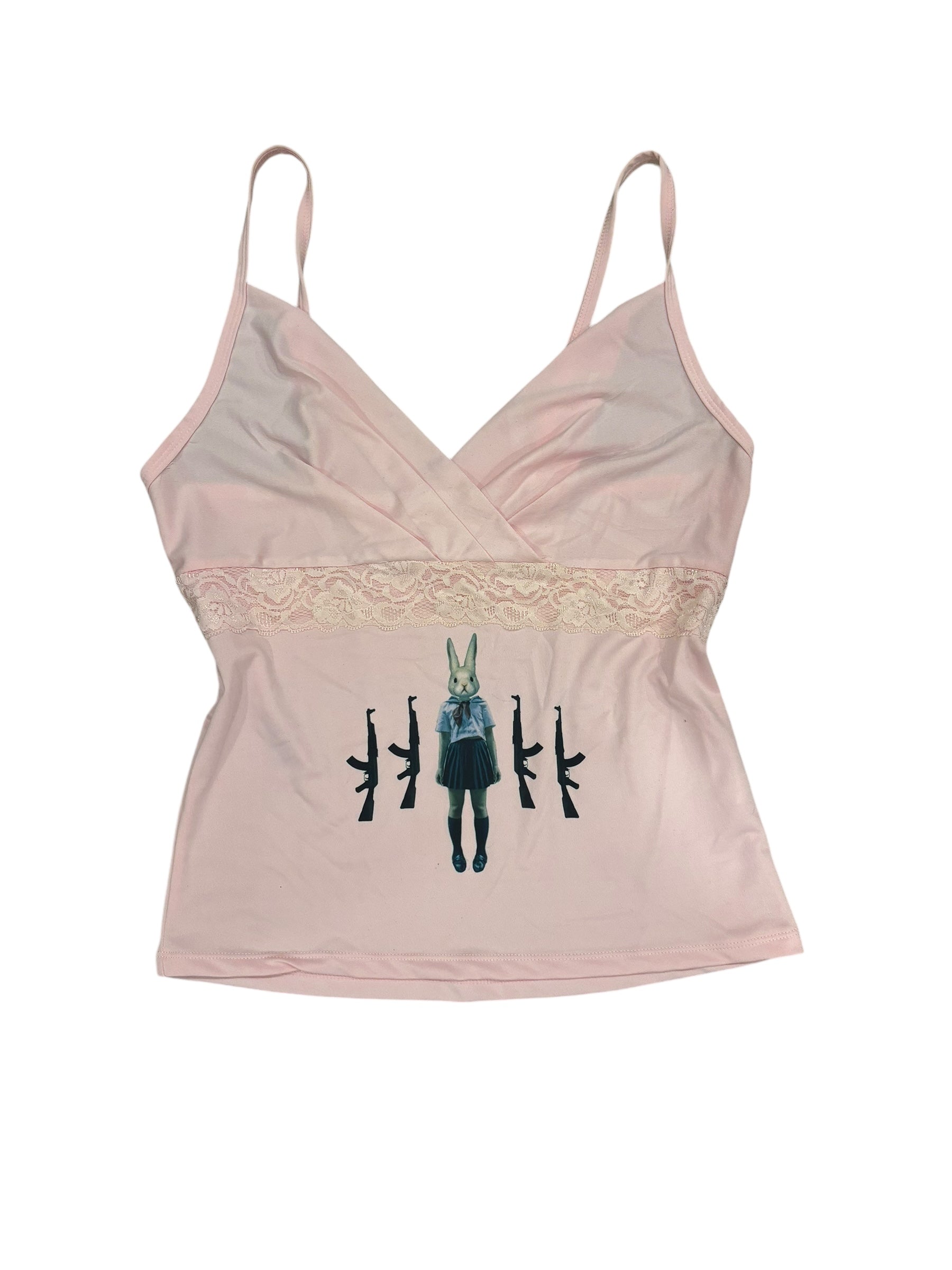 Kill bunny tank in pink!! Fits a S/M best!! Made of super stretchy poly material with lace details!!