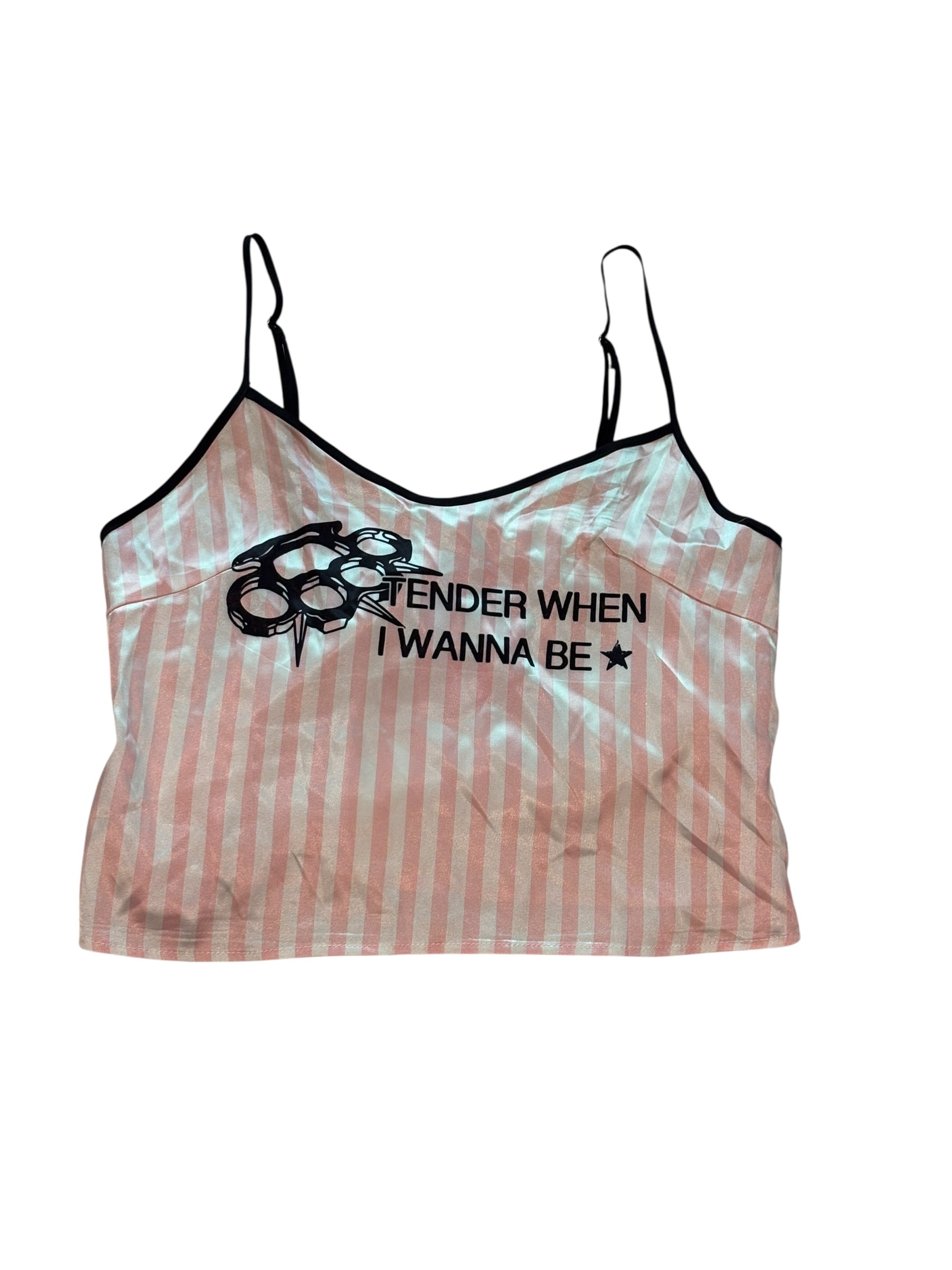 Tender when I wanna be!!! Brass knuckles design on pink and white striped tank! Has adjustable straps and fits a M best!!